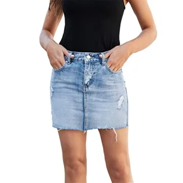 VIPONES Women Denim Skirt High Waist Raw Hem Stretch Ripped Casual Mini Jean Skirts(201,4)