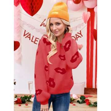 Virmoku Valentines Heart Sweater for Women Lip Valentines Gifts for Her Cute Lips Long Sleeve Crewneck Casual Pullover Tops Watermelon Red