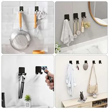 VIS'V Adhesive Razor Holder, Black Metal Razor Hooks Shower Stick on Razor Hanger Waterproof Bathroom Blade Shaver Holder Wall Mount for His and Hers 2 Pcs