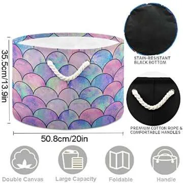 visesunny Storage Basket Magic Mermaid Scale Nursery Hamper Basket Clothes Toy Storage Organizer Bin Box Collapsible Laundry Bag for Kid Room,Playroom,Bathroom,Living Room,Dorm,Office