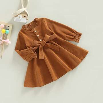 This beautiful dress features elegant long sleeves and sweet buttons that not only enhance its style but also make dressing a breeze. Whether it's a vibrant birthday party or a serene family day, this dress sets the perfect tone for any special occasion. Its versatility makes it a fantastic choice for fall and winter, allowing your baby girl to stay fashionable and warm during the chilly months.