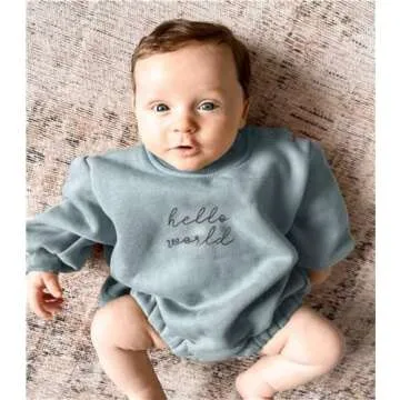 VISGOGO Newborn Infant Baby Boy Girls Oversized Romper Bodysuit Long Sleeve Outfit Clothes (Hello world-Blue,0-3 Months)