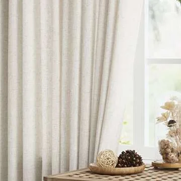 Vision Home Natural Pinch Pleated Semi Sheer Curtains Textured Linen Blended Light Filtering Window Curtains 84 inch for Living Room Bedroom Pinch Pleat Drapes with Hooks 2 Panels 42" Wx84 L
