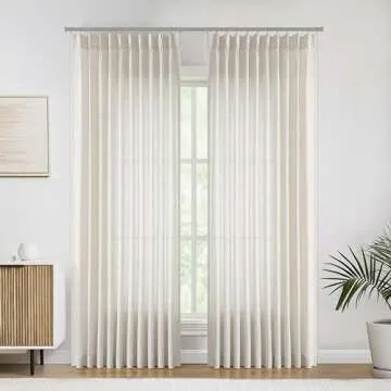 Show moreTransform your living space with the exquisite Vision Home Natural Pinch Pleated Semi Sheer Curtains that elegantly blend style and functionality. Crafted from a textured linen blend, these curtains seamlessly combine modern sophistication with a touch of organic charm. With a generous size of 60 inches wide by 102 inches long, each panel comes meticulously designed to fit perfectly within your home. You won't need to worry about complicated installations either as each package includes 12 hooks, ensuring a quick and easy setup to enhance your window decor right out of the box.