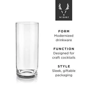 ... Show more Discover the exquisite elegance and modern sophistication of the Minimalist Crystal Highball Glass Set by Viski. Crafted to elevate your drinking experience, this stunning set includes a pair of beautifully designed cocktail glasses featuring a heavy, rounded base that ensures balance and stability, making each sip a delight. At a generous 16 oz capacity, these glasses are perfect for a variety of cocktails, from a refreshing Tom Collins to blended delights like a creamy Piña Colada.