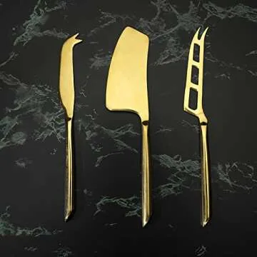Not only do these knives enhance your cheese presentation, but their durable design guarantees longevity, making them ideal for regular use while still looking exquisite on any charcuterie board. The gold finish adds a level of sophistication that will impress your guests during any gathering or celebration.
