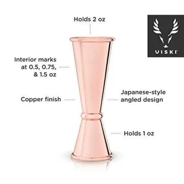 Viski Japanese Style Double Jigger for Cocktails, Bar Kit Essential, 1oz and 2oz with Interior Measurements, Rose Copper