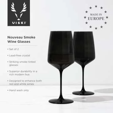 Viski Reserve Colored Wine Glasses, Set of 2, Smoke