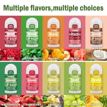 Show moreThe VISRIE Mini Lip Balm 40 Count set offers a delightful variety of lip care that's perfect for anyone looking to keep their lips moisturized and colorful. This bulk collection features 40 mini lip balm sticks, each measuring just 1.6 inches long, making them incredibly portable and convenient for on-the-go hydration. With an enticing assortment of 10 popular flavors—Apple, Watermelon, Mango, Coconut, Peppermint, Pineapple, Rose, Grape, Peach, and Vanilla—there's a flavor to suit every mood and occasion. Formulated with quality ingredients such as Vitamin E, Beeswax, Olive Oil, Coconut Oil, and Shea Butter, these balms provide long-lasting hydration that leaves lips soft and supple without any sticky residue. Say goodbye to dry, chapped lips and embrace the fun and flavored lip care experience with VISRIE!