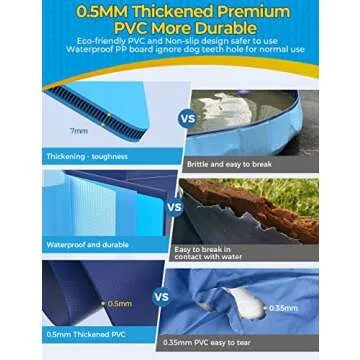 Show more Introducing the VISTOP Jumbo Foldable Dog Pool! Designed with durability in mind, this impressive pool measures a spacious 87 inches in diameter and stands 15.7 inches high, providing the perfect oasis for your pets and kids alike. Made from 0.5 mm thick non-slip PVC material, combined with a robust high-strength PP hard plastic shell, this pool is built to withstand enthusiastic playtime without collapsing or getting scratched. The anti-skid bottom design ensures your furry friends and little ones are safe while they indulge in a refreshing bath or splash around on a hot summer day. Dive into the fun with confidence knowing your pool is sturdy and reliable.