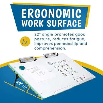 Show more The Visual Edge Slant Board stands out as an essential tool designed to enhance writing and learning experiences for users of all ages. With its 22° angled surface, it promotes better posture, ensuring reduced neck and back fatigue during prolonged writing, drawing, or reading sessions. This means you can stay comfortable and focused, whether you're a student studying for an exam, a teacher preparing lesson plans, or a professional drafting reports. The board is not just a tool; it's a way to improve your workflow and productivity.