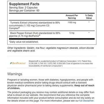 Vitacost Turmeric Extract Curcumin C3 Complex with Bioperine - 1,160 mg per Serving - 120 Capsules