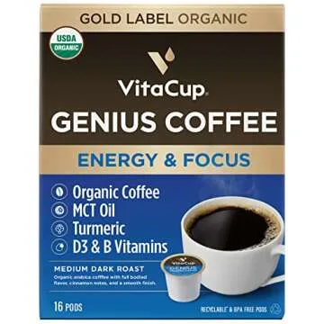 Why You will Love This Product? Embrace the energy and focus you need to tackle your day with the Vitacup Genius Organic & Lightning Coffee. Each sip is not just a step toward alertness; it's a strategic boost towards your goals. Infused with vitamins and quality organic ingredients, this coffee not only awakens but also empowers, making you feel good about what you consume. Feel the difference of a new kind of coffee that doesn’t just taste great but also supports a vibrant lifestyle.