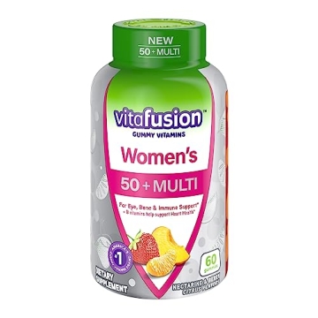 Show moreDiscover the perfect blend of flavor and nutrition with Vitafusion Women's 50+ Daily Multivitamin Gummies. Specially formulated for women over 50, these delightful gummies serve as a delicious alternative to traditional vitamins. Each serving delivers essential vitamins and minerals, including vital B vitamins that support heart health and brain nourishment, ensuring you feel your best every day. Enjoy the natural nectarine and berry citrus flavors that make taking your vitamins a pleasurable experience rather than a chore. Packed in a convenient 60 count bottle, this is enough for a 30-day supply, making it easy to incorporate into your daily routine.