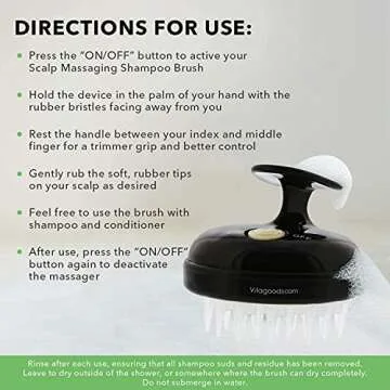 Vitagoods Scalp Massaging Shampoo Brush - Handheld Vibrating Massager, Water-Resistant Device - Black