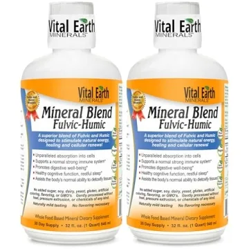 Show moreIntroducing the Vital Earth Minerals Fulvic Humic Mineral Blend Liquid 2-Pack, your ultimate vitality booster designed to transform your health from the inside out. This remarkable blend combines the power of Fulvic and Humic acids, offering a potent 3-to-1 Fulvic Humic mineral synergy that works to restore and revitalize your well-being naturally. Housed in a generous 32-ounce bottle, each pack is enhanced with a convenient BPA-free measurement cup for easy dosing, ensuring you maintain optimal levels for maximum health benefits.