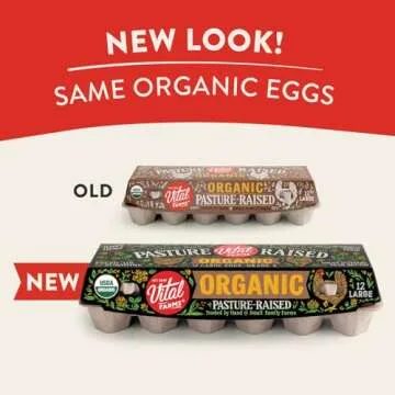 Show moreExperience the pure indulgence of nature with Vital Farms Organic Pasture-Raised Eggs. Each carton holds 12 Large, Brown, Grade A eggs, sourced from a network of over 350 small family farms that prioritize animal welfare and environmental sustainability. Our hens thrive in open pastures, enjoying fresh air, sunshine, and the freedom to forage for local grasses and wildflowers. This unique upbringing not only promotes the health of the hens but also ensures that each egg is a reflection of their enriched lives.