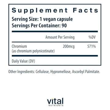 Vital Nutrients Chromium Polynicotinate 200mcg | Vegan Supplement for Energy and Cholesterol Support | Non-GMO | 90 Capsules