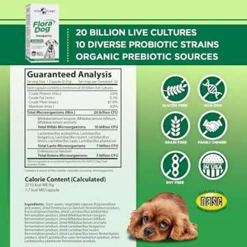 Vital Planet - Flora Dog Probiotic Capsules Supplement with 20 Billion Cultures and 10 Strains, High Potency Immune and Digestive Support Probiotics for Dogs, 30 Delayed Release Capsules