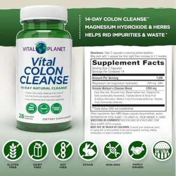 Vital Planet – Vital Colon Cleanse 14-Day Colon Cleanser and Detox with Magnesium Hydroxide, Slippery Elm, and Aloe for Digestive Health Support, Occasional Constipation, and Bloating 28 Capsules