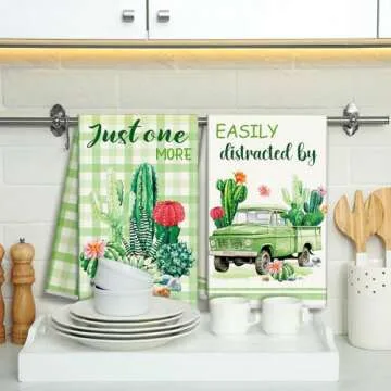 VitalCozy 6 Pcs Spring Lavender Kitchen Towel Set Funny Housewife Farmhouse Rustic Bath Hand Towel for Spring Holiday Bathroom Gift, 24 x 16 Inches(Green,Cactus)