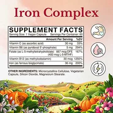 Show moreIntroducing the Vitalitown Iron Complex, your ultimate ally in enhancing blood health and vitality! This comprehensive blood building formula blends a powerful mix of iron and essential vitamins to support the body’s natural needs, especially for menstruating women. With 36 mg of elemental iron, enriched with 5 mg of vitamin B6, 400 mcg of methyl folate, 30 mcg of vitamin B12, and a generous dose of 30 mg of vitamin C, this once-daily vegan capsule is designed for optimal absorption and energy enhancement. Say goodbye to fatigue and hello to a vibrant life with just one capsule a day!