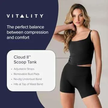 Show more Unleash your inner athlete with the Vitality Cloud II Scoop Tank, the perfect blend of style, comfort, and functionality. Crafted from an innovative Cloud II fabric, this tank top boasts a lightweight, marshmallow-like texture that gently hugs your body. Designed for medium compression, it ensures that you receive support without sacrificing flexibility. The moisture-wicking properties keep you feeling fresh and dry during even the most intense workouts, whether you're hitting the gym, going for a run, or practicing yoga. It's not just an athletic piece; it's a statement of your commitment to quality and performance.