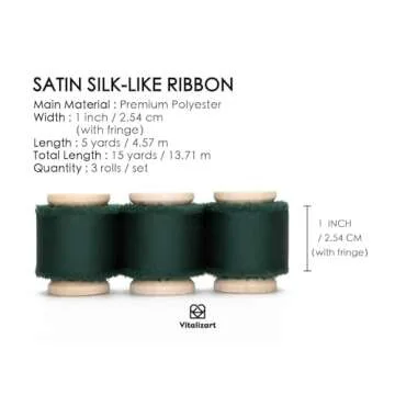 Show moreIntroducing the exquisite Vitalizart Silk Satin Ribbon, a must-have crafting essential for elevating your gift-wrapping and DIY projects! Each pack comes with three luxurious rolls, measuring 1 inch by 5 yards, beautifully designed in a rich dark green color that radiates sophistication and charm. This ribbon stands out not just for its striking color but also for its silky satin texture that introduces a level of elegance and refinement to both personal and professional projects. Whether you're preparing for a beautiful wedding, creating elegant floral bouquets, or wrapping gifts that stand out, this ribbon's remarkable thickness and durability make it an unbeatable choice for any crafting enthusiast.