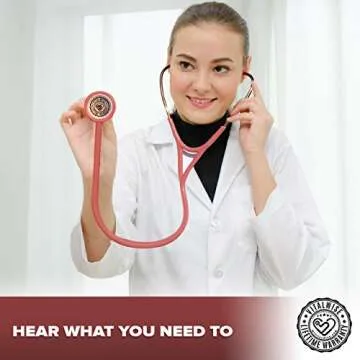 Show more Introducing the VITALWISE Heart Shaped Rose Gold and Soothing Pink Cardiology Stethoscope, a stunning blend of style and functionality, designed with healthcare professionals in mind. This exquisite 28-inch stethoscope features a beautiful rose gold metal finish paired with visually appealing soothing pink tubing. Perfect for both aesthetic appeal and practical use, this stethoscope also comes with four mix-and-match color options for customizable ear tips, allowing you to personalize your listening experience. Accompanied by a chic, customizable pink carrying case, it ensures safe and easy transport from one setting to another while maintaining its stylish charm.