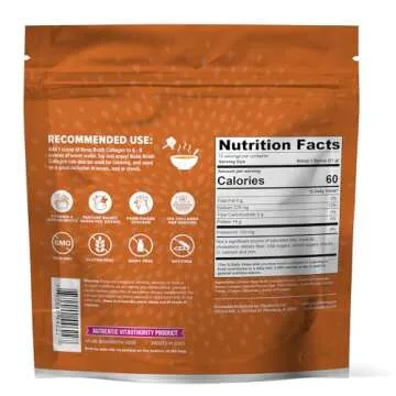 Vitauthority Bone Broth Collagen Delicious Chicken Noodle Flavored - Packed with 16g of Protein & Types I, II, III - Nourishes Skin, Hair, Nails, Joints, & Gut - Beef BoneBroth