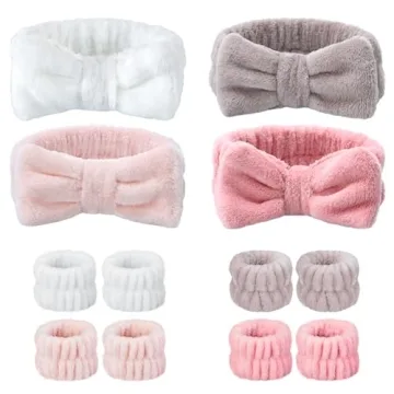 Show more This adorable makeup headband and wristband set features a cute bow design that adds a playful touch to your beauty routine. Made from soft coral velvet, the headbands feel fluffy and comfortable against your skin, ensuring that you can apply your makeup without any irritation. With an impressive elasticity that stretches from 7.15 inches to 14 inches, these headbands adapt perfectly to most head sizes, making them an essential accessory for both minimalists and those who cherish a little flair in their beauty kit.