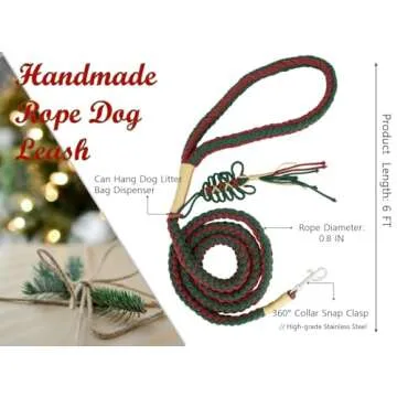 Vitisyao Handmade Rope Dog Leash 6 FT, Braided Cotton Rope with Heavy Duty Stainless Steel Clasp, Special Leash for Small to Large Dogs