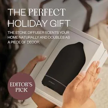 Show more Discover the art of creating your own oasis at home with the exquisite black aroma diffuser by Vitruvi. Crafted from premium stoneware, this diffuser is not just a functional item but a statement piece that elevates your decor. Its sleek and modern design seamlessly integrates into any space, offering an aesthetic that is both minimalistic and refined. The diffuser features an advanced ultrasonic technology that gently releases a fine mist into the air, filling your room with the soothing scents of your favorite essential oils.