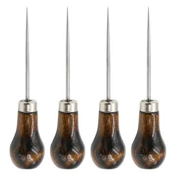 Introducing the VIUJUH Awl, a perfect blend of quality and craftsmanship designed for sewing enthusiasts and professional tailors alike. This Gourd Shape Awl features a meticulously crafted log handle designed for comfortable handling, ensuring you can work on your projects for extended periods without discomfort. Its taper head, measuring 3.6 inches, is expertly designed to be thin yet versatile, making it ideal for a wide range of applications from sewing to leatherwork....