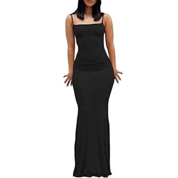 VIUTIL Womens Sexy Bodycon Maxi Dress Sleeveless Tight Lounge Slip Long Dress 2025 Summer, Black, Medium