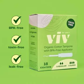 Viv for Your V Organic Cotton Tampons with BPA-Free Applicator | Toxin and Fragrance Free | Super Absorbancy | 18 Count