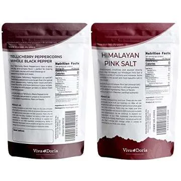 Introducing the ultimate seasoning duo for culinary aficionados, the Viva Doria Tellicherry Whole Black Peppercorns and Himalayan Pink Salt Combo. Unleash a symphony of flavors in your dishes with this exquisite pairing. The Himalayan Pink Salt, harvested from ancient salt deposits, is renowned for its stunning pink hue and rich mineral content, enhancing the taste of every meal while providing visual appeal. Unlike everyday table salt, this salt depth and brings a delightful...