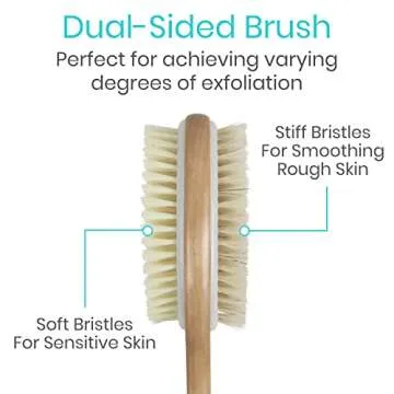 Vive Shower Back Brush - Body Scrubber for Men & Women - Long Handle Bath Brush for Showering, Dry & Wet Brushing - Washer Scrub, Exfoliator, Cleaner, Scratcher for Elderly - Soft & Stiff Bristles