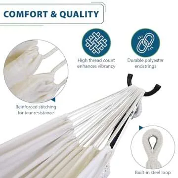 Vivere Double Cotton Hammock with Space Saving Steel Stand, Upgraded Polyester End Strings 450 lb Capacity - Premium Carry Bag Included - USA Grown Cotton (Natural)