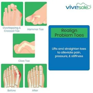 Show moreIntroducing the ViveSole Budin Splint Toe Straightener, your ultimate solution for correcting problem toes! Specially designed for individuals battling hammer toes, crooked toes, and claw toes, this innovative toe straightening device offers corrective support that is gentle yet effective. Composed of soft, cushioned materials, the Budin splint provides therapeutic comfort, helping to alleviate pressure and reduce any pain or irritation you may experience.
