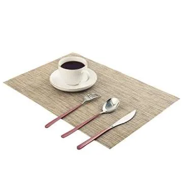 Vivi&Stitch Wipeable Placemats, 6 Pack Table Placemats, Easy to Clean Heat-Resistant Stain Resistant Anti-Skid Woven Vinyl PVC Table Mats for Kitchen Dining Table(Linen)