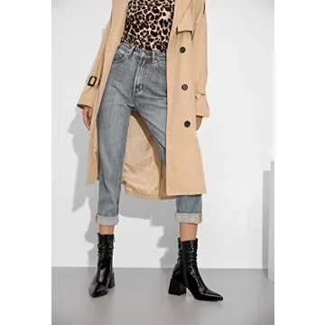 vivianly Pointed Toe Ankle Boot Mid-Calf Boots Chunky Block Heel Booties for Women size 7