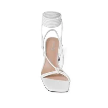 vivianly Women's Lace Up Chunky Heel Sandals Strappy Straps Ankle Wrap Heels White Size 8