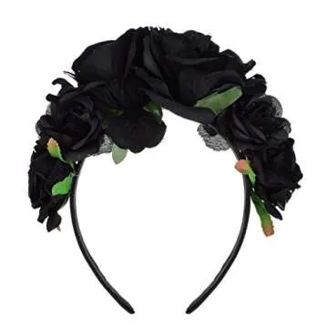 Show moreIntroducing the Vividsun Rose Flower Headband Floral Crown Day Of The Dead Headpiece - a stunningly crafted accessory that flawlessly blends elegance with playful charm. Designed with meticulous attention to detail, this headband features beautiful black roses that create a striking visual impact, making it a perfect choice for various festive occasions. Handmade to ensure quality, this floral crown is not just an accessory but a statement piece that will elevate your outfit for Halloween, Day of the Dead celebrations, weddings, and costume parties alike. Unlock your inner goddess with this eye-catching headpiece and transform any look into something extraordinary!
