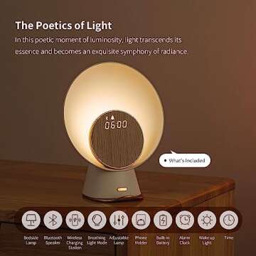 Vivilumens Sunrise Alarm Clock for Bedroom, 6 in 1 Alarm Clocks with Wireless Charging, Wake Up Light Bedside Clock Lamp Adjustable, Bluetooth Speaker, 3-Color Breathing Light, Gifts for Women Men