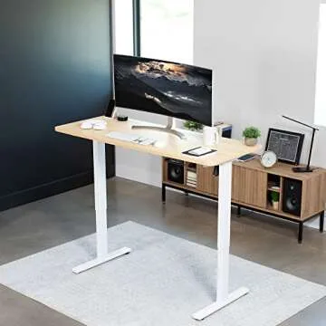 Show more Transform your work experience with the VIVO Electric 60 x 24 inch Standing Desk Workstation. This innovative active workstation allows you to transition seamlessly between sitting and standing, promoting a healthier work lifestyle. With a robust design and a user-friendly memory controller, this desk is engineered for comfort and convenience. The stunning one-piece light wood top offers ample space for all your workspace essentials, while the elegant white frame adds a contemporary touch to any office environment. Whether for work or study, the adjustable heights and durable build are designed to enhance your productivity and well-being.