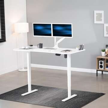VIVO Electric 63 x 32 inch Standing Desk Workstation, Memory Controller Height Adjustment, 176 lb Frame Support, 2E Series, White Top White Frame, DESK-KIT-2E1W