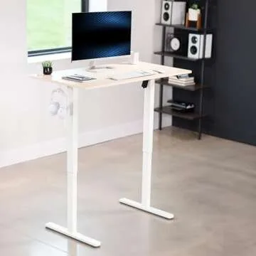 Show more Introducing the VIVO Electric Height Adjustable Sit Stand Desk, a revolutionary workstation designed to transform your work experience by promoting a healthier lifestyle through flexibility and comfort. With a generous 44" x 23.6" surface area, this desk is perfect for those who want to optimize their workspace without sacrificing aesthetics or functionality. Its elegant light wood top paired with a sleek white frame adds a contemporary touch to any office or home décor.