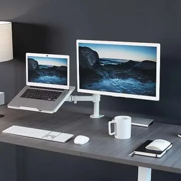 Show more Introducing a remarkable solution for your workspace, the VIVO Single Monitor and Laptop Mount enhances your productivity and provides flexibility like never before. Designed with compatibility in mind, this mount accommodates most screens ranging from 13” to 32” and can support up to 22 lbs weight, making it an ideal choice for various monitor sizes. The vented laptop tray is capable of holding laptops up to 17”, ensuring all your devices are at your fingertips.