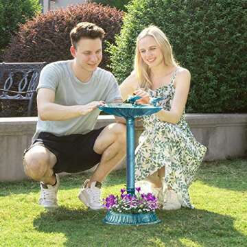 VIVOHOME 26 Inch Height Polyresin Lightweight Antique Outdoor Double Birds Garden Bird Bath with Planter Green